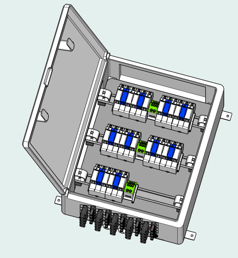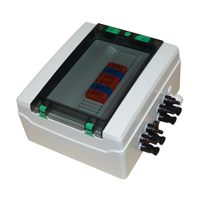 GENBoxen für Direktanschluss mit bis zu 3 MPP-Trackern bis 1500V DC. Sowohl als T2 Überspannungsableiter oder T1+T2 Kombiableiter lieferbar.
